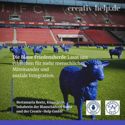 Das Besondere an den blauen Schafen der BLAUSCHÄFEREI REETZ ist, dass sie in den Werkstätten Köln-Poll (Sozialbetriebe Köln gGmbH) handgefärbt und verpackt werden.